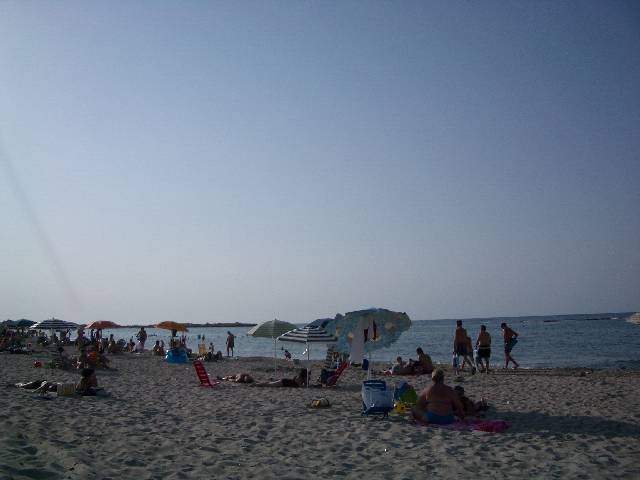 海岸で海水浴を楽しむ人たち。Beach under very strong sun.